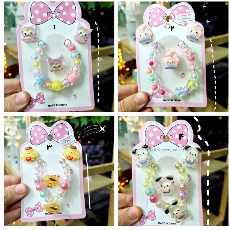 ست دستبند و گوشواره و انگشتر مرواریدی سانریو